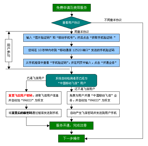 注:用戶可根據(jù)重置或新產(chǎn)生的飛信密碼,登錄進飛信客戶端修改密碼。